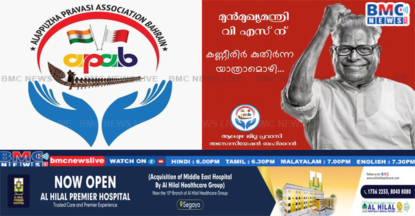 പുന്നപ്രവയലാർ സമര നായകനും, മുതിർന്ന കമ്മ്യൂണിസ്റ്റ് നേതാവുമായ വി എസ് കർഷകരുടെയും സാധാരണക്കാരുടെയും അവകാശങ്ങൾക്കായി ജീവിതം സമർപ്പിച്ച മഹാനായ നേതാവായിരുന്നു. തൊഴിലാളികളുടെ അവകാശങ്ങൾക്കായി എന്നും നിലകൊണ്ട വി.എസിന്റെ നിര്യാണത്തിൽ ആലപ്പുഴ ജില്ലാ പ്രവാസി അസോസിയേഷൻ ബഹ്റൈൻ അതിയായ ദുഃഖം രേഖപ്പെടുത്തുന്നു. അതൊടൊപ്പം കുടുംബത്തിൻ്റേയും, നാടിൻ്റെയും ദുഖഃത്തിൽ പങ്കുചേരുന്നു.