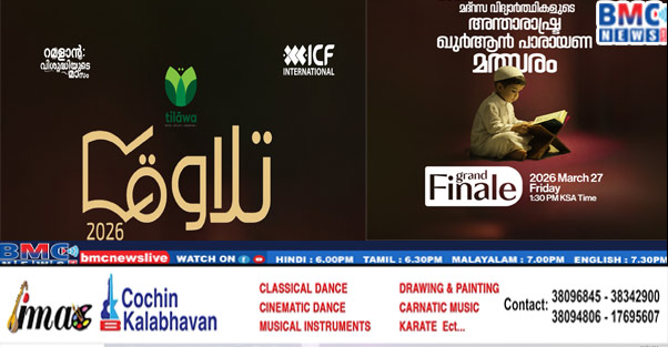 പ്രവാസ ലോകത്തെ മദ്റസ വിദ്യാർഥികൾക്കായി ഐ.സി.എഫ്. സംഘടിപ്പിക്കുന്ന ഖുർആൻ പാരായണ മത്സരം ‘തിലാവ-2026’ അന്താരാഷ്ട്ര ഫൈനൽ മത്സരം വെള്ളിയാഴ്ച (മാർച്ച് 27) നടക്കും.ഖുർആൻ പാരായണത്തിന്റെ മഹത്വവും പ്രാധാന്യവും പുതിയ തലമുറയിലേക്ക് എത്തിക്കുന്നതിനൊപ്പം വിദ്യാർഥികൾക്ക് ഖുർആനുമായുള്ള ബന്ധം ഊട്ടിയുറപ്പിക്കുകയാണ് ഇതിലൂടെ ലക്ഷ്യമാക്കുന്നത്. മദ്റസ, റീജിയൺ, ചാപ്റ്റർ, നാഷണൽ എന്നീ നാല് ഘട്ടങ്ങളിലായാണ് മത്സരങ്ങൾക്ക് ശേഷമാണ് അന്താരാഷ്ട്ര മത്സരം നടക്കുന്നത്. വിവിധ രാജ്യങ്ങളിൽ നിന്ന് ഒന്നാം സ്ഥാനം നേടിയ പ്രതിഭകൾ മാറ്റുരയ്ക്കുന്ന ഗ്രാന്റ് ഫിനാലെ മാർച്ച് വിർച്വൽ പ്ലാറ്റ്ഫോമിലൂടെയാണ് ഇത്തവണ […]