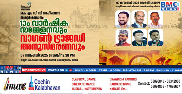 കെഎംസിസി ബഹ്റൈൻ തിരൂർ മണ്ഡലം ഒന്നാം വാർഷിക സമ്മേളനവും, വാഗൺട്രാജഡി അനുസ്മരണവും നാളെ( 2025 നവംബർ 7ന് ) മനാമ കെഎംസിസി ഓഫീസിലെ പാണക്കാട് സെയ്യിദ് ഹൈദരലി ശിഹാബ് തങ്ങൾ ഓഡിറ്റോറിയത്തിൽ നടക്കും. വേൾഡ് കെഎംസിസി സെക്രട്ടറി അസ്സൈനാർ കളത്തിങ്ങൽ ഉത്ഘാടനം ചെയ്യുന്ന പരിപാടിയിൽ പ്രമുഖ ചരിത്ര പ്രഭാഷകൻ അറക്കൽ അബ്ദുൽ റഹ്മാൻ മുഖ്യ പ്രഭാഷണം നടത്തും. കെഎംസിസി സ്റ്റേറ്റ് പ്രസിഡന്റ് ഹബീബ് റഹ്മാൻ സാഹിബ്, ജനറൽ സെക്രട്ടറി ശംസുദ്ധീൻ വെള്ളികുളങ്ങര, കെഎംസിസി ബഹ്റൈൻ മലപ്പുറം ജില്ല […]