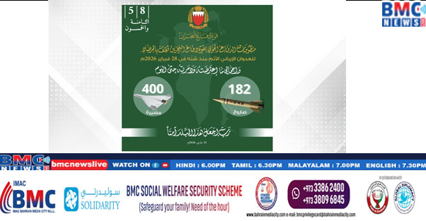 ബഹ്റൈനു നേരെ ഇറാൻ നടത്തുന്ന ആക്രമണത്തിന്റെ ഭാഗമായുള്ള മിസൈലുകളെയും ഡ്രോണുകളും , BDF ന്റെ വ്യോമ പ്രതിരോധ സംവിധാനങ്ങൾ വിജയകരമായി നേരിടുന്നുണ്ടെന്ന് ബഹ്റൈൻ പ്രതിരോധ സേനയുടെ ജനറൽ കമാൻഡ് അറിയിച്ചു. ഇതുവരെ ബഹ്റൈനെ ലക്ഷ്യമിട്ട് പതിച്ച 182 മിസൈലുകളും 400 ഡ്രോണുകളും നശിപ്പിച്ചതായും സേന വ്യക്തമാക്കി.BDF ഉദ്യോഗസ്ഥരുടെ സേവനത്തിലും നേതൃത്വത്തിലും ജനറൽ കമാൻഡ് അഭിമാനം പ്രകടിപ്പിക്കുകയും രാജ്യത്തെ പ്രതിരോധിക്കുന്നതിൽ അവരുടെ സുസ്ഥിരമായ പ്രവർത്തനത്തെ അഭിനന്ദിക്കുകയും ചെയ്തു.എല്ലാ പൊതുജനങ്ങളും അവരുടെ സ്വകാര്യ സുരക്ഷയ്ക്കായി പരമാവധി ജാഗ്രത പാലിക്കണമെന്ന് ജനറൽ കമാൻഡ് അഭ്യർത്ഥിച്ചു
