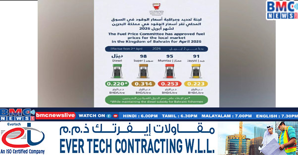 ബഹ്റൈനിൽ പരിഷ്കരിച്ച ഇന്ധന നിരക്കുകൾ പ്രഖ്യാപിച്ചു. ‘ഫ്യുവൽ പ്രൈസ് കമ്മിറ്റി’ ആണ് പുതുക്കിയ നിരക്കുകൾ പുറത്തുവിട്ടത്. പരിഷ്കരിച്ച നിരക്കുകൾ ഇന്നു മുതൽ പ്രാബല്യത്തിൽ വന്നു . വിവിധ ഇന്ധനങ്ങളുടെപുതുക്കിയ നിരക്കുകൾ പ്രകാരം ലിറ്റർ വില ജയ്യിദ് (91): 0.223 ബി.ഡി, മുംതാസ് (95): 0.253 ബി.ഡി, സൂപ്പർ (98): 0.314 ബി.ഡി, ഡീസൽ: 0.220 ബി.ഡി എന്നിങ്ങനെയാണ്. ബഹ്റൈനിലെ മത്സ്യത്തൊഴിലാളികൾക്ക് നൽകിവരുന്ന ഡീസൽ സബ്സിഡി മാറ്റമില്ലാതെ തുടരുമെന്നും മന്ത്രാലയം അറിയിച്ചു.