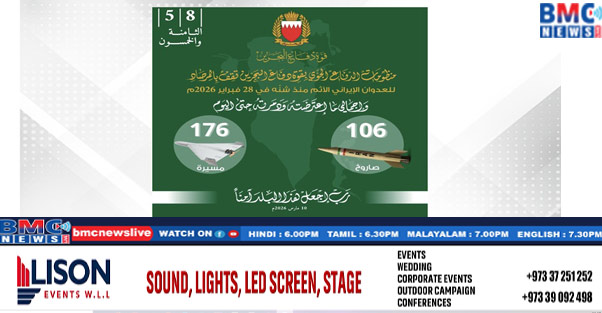 ഇറാന്റെ ആക്രമണങ്ങളെ തങ്ങളുടെ വ്യോമ പ്രതിരോധ സംവിധാനങ്ങൾ വിജയകരമായി തടയുന്നത് തുടരുകയാണെന്ന് ബഹ്റൈൻ ഡിഫൻസ് ഫോഴ്സ് ജനറൽ കമാൻഡ് പറഞ്ഞു . ബിഡിഎഫ് സേന ബഹ്റൈൻ രാജ്യത്തിന് നേരെ 106 ബാലിസ്റ്റിക് മിസൈലുകളും 176 ആളില്ലാ ഡ്രോണുകളും നശിപ്പിച്ചു.ഈ കാലയളവിലുടനീളം ഉദ്യോഗസ്ഥർ പ്രകടിപ്പിച്ച അസാധാരണമായ യുദ്ധ സന്നദ്ധതയെയും പ്രവർത്തന മികവിനെയും ബിഡിഎഫ് ജനറൽ കമാൻഡ് പ്രശംസിക്കുകയും ബഹ്റൈന്റെ വ്യോമാതിർത്തി ഇപ്പോഴും സംരക്ഷിക്കപ്പെട്ടിട്ടുണ്ടെന്ന് സ്ഥിരീകരിക്കുകയും ചെയ്തു.പൊതുജനങ്ങൾ വീടിനുള്ളിൽ തന്നെ തുടരാനും അത്യാവശ്യ സന്ദർഭങ്ങളിൽ മാത്രം പുറത്തുപോകാനും ആവശ്യമായ എല്ലാ മുൻകരുതലുകളും സ്വീകരിക്കാനും അഭ്യർത്ഥിച്ചു . ബാധിത പ്രദേശങ്ങളിൽ നിന്നും സംശയാസ്പദമായ വസ്തുക്കളിൽ നിന്നും അകന്നു നിൽക്കാനും, സൈനിക നടപടികളുടെയോ അവശിഷ്ട സ്ഥലങ്ങളുടെയോ ചിത്രീകരണം ഒഴിവാക്കാനും, സ്ഥിരീകരിക്കാത്ത വിവരങ്ങൾ പ്രചരിപ്പിക്കുന്നത് ഒഴിവാക്കാനും, അപ്ഡേറ്റുകൾക്കും ഉപദേശങ്ങൾക്കുമായി ഔദ്യോഗിക ഉറവിടങ്ങളെ മാത്രം ആശ്രയിക്കാനും ജനങ്ങളോട് നിർദ്ദേശിച്ചു.