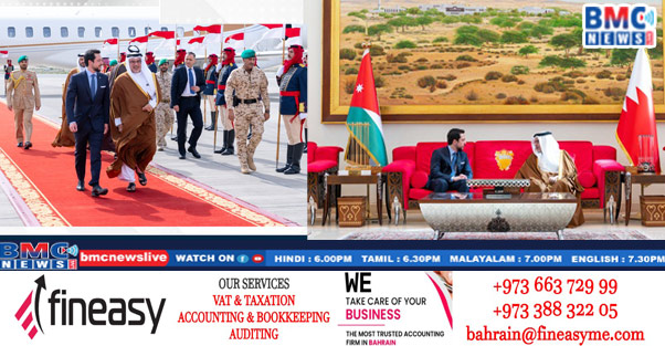 ജോർദാനിൻറെ കിരീടാവകാശി ഹിസ് റോയൽ ഹൈനസ് അൽ ഹുസൈൻ ബിൻ അബ്ദുല്ല രണ്ടാമനും കിരീടാവകാശിയും പ്രധാനമന്ത്രിയുമായ ഹിസ് റോയൽ ഹൈനസ് പ്രിൻസ് സൽമാൻ ബിൻ ഹമദ് അൽ ഖലീഫയും തമ്മിൽ കൂടി കാഴ്ച നടത്തി.സന്ദർശന വേളയിൽ, വിവിധ മേഖലകളിലെ ബഹ്റൈൻ-ജോർദാൻ ബന്ധം ശക്തിപ്പെടുത്തുന്നതിനുള്ള കാര്യങ്ങൾ അവലോകനം ചെയ്യും.ഏറ്റവും പുതിയ പ്രാദേശിക സംഭവവികാസങ്ങളും പ്രാദേശിക, അന്തർദേശീയ സുരക്ഷയിലെ അവയുടെ പ്രത്യാഘാതങ്ങളും പൊതു താൽപ്പര്യമുള്ള വിഷയങ്ങളും ചർച്ച ചെയ്യും.പ്രധാനമന്ത്രിയുടെ കോടതി മന്ത്രി ഹിസ് ഹൈനസ് ഷെയ്ഖ് ഇസ ബിൻ സൽമാൻ ബിൻ ഹമദ് അൽ ഖലീഫ, ഹിസ് ഹൈനസ് ഷെയ്ഖ് മുഹമ്മദ് ബിൻ സൽമാൻ ബിൻ ഹമദ് അൽ ഖലീഫ എന്നിവരും നിരവധി മുതിർന്ന ഉദ്യോഗസ്ഥരും പങ്കെടുത്തു.