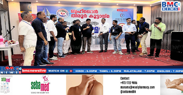 ബഹ്റൈൻ തിരൂർ കൂട്ടായ്മ 7-ാം വാർഷികവും, കടുംബ സംഗമവും സംഘടിപ്പിച്ചു.മനാമ കെ സിറ്റി ഹാളിൽ വെച്ച് 14/11/2025 വെള്ളിയഴ്ച നടന്ന പരിപാടിയിൽ 35 വർഷക്കാലം ബഹ്റൈൻ ഹോം ഡിപ്പാർട്ട്മെന്റിൽ ജോലി ചെയ്ത് വിരമിച്ച കൂട്ടായ്മയുടെ പ്രസിഡണ്ട് അഷ്റഫ് കുന്നത്തുപറമ്പിന് കൂട്ടായ്മയുടെ സ്നേഹോഷ്മളമായ ആദരവ് ഡോക്ടർ യാസർ ചോമയിൽ നൽകി. 2026-27 വർഷത്തേക്കുള്ള മെമ്പർഷിപ്പ് ക്യാംപയിൻ അഷ്റഫ് കുന്നത്ത് പറമ്പിൽ മുഹമ്മദ് ഇല്യാസിന് നൽകി ഉദ്ഘാടനം ചെയ്തു തുടർന്ന് നടന്ന പരിപാടിയിൽ ബഹ്റൈനിലെ വിവിധ കലാകാരൻമാരുടെയും , ഗസൽ ബഹ്റൈനിന്റെ മുട്ടിപ്പാട്ടും,മെമ്പർമാരുടെ സംഗീത നിശയും വിവിധ പരിപാടികളും നടന്നു.തിരൂർ കൂട്ടായ്മയുടെ പ്രസിഡണ്ട് അഷ്റഫ് കുന്നത് പറമ്പിലിന്റെ അദ്ധ്യക്ഷതയിൽ കിങ് ഹമദ് യൂണിവേഴ്സിറ്റി ഹോസ്പിറ്റൽ എമർജൻസി വിഭാഗം ഡോ: യാസർ ചോമയിൽ ഉദ്ഘാടനം നിർവ്വഹിച്ചു. ചടങ്ങിൽ ജ. സെക്രടറി P. മുജീബ് റഹ്മാൻ സ്വാഗതവും ഫിനാൻസ് കോഡിനേറ്റർ റമീസ് നന്ദിയും പറഞ്ഞു. കൂട്ടായ്മ രക്ഷാധികാരിയും , BMDF-ന്റെ ജ. സെക്രട്ടറി ഷെമീർ പൊട്ടച്ചോല, അഷ്റഫ് പൂക്കയിൽ അനൂപ് റഹ്മാൻ , സതീശൻ പടിഞ്ഞാറേക്കര,പ്രൊഗ്രാം കൊഡിനേററ്റർ ഇസ്മായിൽ, എന്നിവർ പരിപാടിക്ക് ആശംസകൾ അർപ്പിച്ചു.പരിപാടികൾ അവതരിപ്പിച്ചവർക്കുള്ള സമ്മാനദാനം ഇബ്രാഹിം പാറപ്പുറം, താജുദ്ധീൻ, മമ്മുക്കുട്ടി,ജിദിൻ ദാസ്, നജ്മുദ്ധിൻ, ശ്രീനിവാസൻ,റഷീദ്,ഫാറൂഖ് തിരുർ, ഇബ്രാഹിം പരിയാപുരം വിതരണം ചെയ്തു.ചടങ്ങിന് ഗ്രൂപ്പ് മെമ്പർമാർ നേത്യത്വം നൽകി.