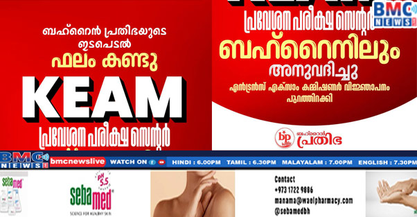 ബഹ്റൈനിലെ മലയാളി വിദ്യാർത്ഥികൾക്ക് KEAM പ്രവേശന പരീക്ഷ എഴുതുന്നതിനായി ബഹ്റൈനിൽ പരീക്ഷാ സെന്റർ അനുവദിച്ചു വിജ്ഞാപനം പുറത്തിറക്കി കേരള എൻട്രൻസ് കമ്മീഷണർ ഓഫീസ്. പശ്ചിമേഷ്യയിൽ നിലനിൽക്കുന്ന സംഘർഷാവസ്ഥയെ തുടർന്ന് നാട്ടിലേക്കു യാത്ര ചെയ്യാൻ കഴിയാത്ത വിദ്യാർത്ഥികളുടെ പ്രയാസങ്ങൾ ചൂണ്ടിക്കാട്ടി ബഹ്റൈൻ പ്രതിഭ കേരള മുഖ്യമന്ത്രി, ഉന്നത വിദ്യാഭ്യാസ വകുപ്പ് മന്ത്രി, എൻട്രൻസ് എക്സാമിനേഷൻ കമ്മീഷണർ, കൂടാതെ നോർക്ക റൂട്സ് സി.ഇ.ഒ തുടങ്ങിയവരുടെ ഇടപെടൽ അഭ്യർത്ഥിച്ചിരുന്നു. രക്ഷിതാക്കളുടെയും വിദ്യാർത്ഥികളുടെയും പ്രയാസം മനസിലാക്കി ഏപ്രിൽ നാലിന് എൻട്രൻസ് കമ്മീഷണർ ഓഫീസ് ബഹ്റൈനിൽ പരീക്ഷാ സെന്റർ അനുവദിച്ചു വിജ്ഞാപനം പുറത്തിറക്കി.