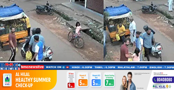 റോഡ് സൈഡിൽ വാഹനം നിർത്തി പച്ചക്കറി വണ്ടിയിൽ നിന്ന് സാധനങ്ങൾ വാങ്ങി പരസ്പരം സംസാരിച്ച് നിൽക്കുകയായിരുന്നു യുവാക്കൾ. ഇതേസമയം റോഡിന്റെ മറുവശത്ത് ചെറിയ സൈക്കിളുമായി നിൽക്കുന്ന പെൺകുട്ടി ചൂയിംഗം വായിൽ ഇടുന്നുതും പുറത്തുവന്ന സിസിടിവി ദൃശ്യങ്ങളിലുണ്ട്. എന്നാൽ അൽപനേരത്തിനുള്ളിൽ ബുദ്ധിമുട്ട് തോന്നിയ പെൺകുട്ടി യുവാക്കളുടെ അടുത്തേക്ക് സൈക്കിളിൽ സഹായം തേടുകയായിരുന്നു. പെട്ടെന്ന് തന്നെ യുവാക്കളിലൊരാൾ കുട്ടിയ്ക്ക് പ്രഥമ ശുശ്രൂഷ നൽകി.