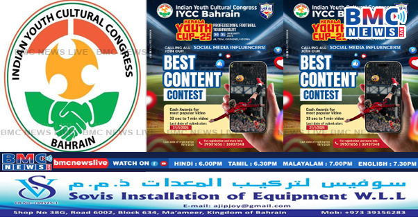 ഐ.വൈ.സി.സി ബഹ്റൈൻ ദേശീയ സ്പോർട്സ് വിങ്ങിന്റെ ആഭിമുഖ്യത്തിൽ സംഘടിപ്പിക്കുന്ന പ്രഫഷനൽ ഫുട്ബോൾ ടൂർണമെന്റിന്റെ ഭാഗമായി ബെസ്റ്റ് കണ്ടന്റ് ക്രീയേറ്റർ കോൺടസ്റ്റ് സംഘടിപ്പിക്കുന്നു.കേരള ഫുട്ബോൾ അസോസിയേഷൻ ബഹ്റൈനുമായി സഹകരിച്ചു കൊണ്ട് ജനുവരി 30, 31 തിയതികളിൽ ഹൂറയിലെ അൽ ടീൽ സ്റ്റേഡിയത്തിൽ വെച്ചാണ് ഫുട്ബോൾ മത്സരം നടക്കുന്നത്.
