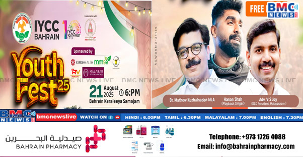 ഐ.വൈ.സി.സി ബഹ്റൈൻ യൂത്ത് ഫെസ്റ്റ് 2025 ഓഗസ്റ്റ് 21-ന് ബഹ്റൈൻ കേരളീയ സമാജത്തിൽ നടക്കുമെന്ന് ഭാരവാഹികൾ വാർത്താക്കുറിപ്പിൽ അറിയിച്ചു. കഴിഞ്ഞ 13 വർഷമായി ബഹ്റൈനിലെയും നാട്ടിലെയും ജീവകാരുണ്യ, വിദ്യാഭ്യാസ, കല, കായിക, വനിതാ ശാക്തീകരണ മേഖലകളിൽ സജീവമായി പ്രവർത്തിച്ചുവരുന്ന ഐ.വൈ.സി.സി, യുവജനങ്ങളുടെ കലാപരമായ കഴിവുകൾ പ്രോത്സാഹിപ്പിക്കുക എന്ന ലക്ഷ്യത്തോടെയാണ് ഇത്തരം പരിപാടികൾ സംഘടിപ്പിക്കുന്നത്.പ്രശസ്ത യുവഗായകൻ ഹനാൻ ഷായുടെ സംഗീതപരിപാടിയാണ് യൂത്ത് ഫെസ്റ്റിന്റെ പ്രധാന ആകർഷണം. ഹനാൻ ഷായോടൊപ്പം ബഹ്റൈനിലെ കലാകാരന്മാരും പരിപാടികൾ അവതരിപ്പിക്കും. ബഹ്റൈൻ പാർലമെന്റ് അംഗം ഇമാൻ ഹസൻ ഷൊവൈറ്റർ എം.പി മുഖ്യാതിഥിയായി പങ്കെടുക്കും. കോൺഗ്രസ് നേതാവ് മാത്യു കുഴൽനാടൻ എം.എൽ.എ യൂത്ത് ഫെസ്റ്റ് ഉദ്ഘാടനം ചെയ്യും. മലപ്പുറം ഡി.സി.സി. പ്രസിഡന്റ് വി.എസ്. ജോയ് മുഖ്യപ്രഭാഷണം നടത്തും. ഐ.ഒ.സി ചെയർമാൻ മുഹമ്മദ് മൻസൂർ, ബഹ്റൈൻ കേരളീയ സമാജം പ്രസിഡന്റ് പി.വി. രാധാകൃഷ്ണപിള്ള, ഇന്ത്യൻ സ്കൂൾ ചെയർമാൻ ബിനു മണ്ണിൽ, കെ.എം.സി.സി പ്രസിഡന്റ് ഹബീബ് റഹ്മാൻ അടക്കമുള്ള പ്രമുഖരുടെ സാന്നിധ്യം പരിപാടിക്ക് മികവേകും.ഐ.വൈ.സി.സി ബഹ്റൈൻ ദേശീയ പ്രസിഡന്റ് ഷിബിൻ തോമസ്, ജനറൽ സെക്രട്ടറി രഞ്ജിത്ത് മാഹി, ട്രഷറർ ബെൻസി ഗനിയുഡ്, യൂത്ത് ഫെസ്റ്റ് ആക്ടിങ് ജനറൽ കൺവീനർ ബേസിൽ നെല്ലിമറ്റം, ഫിനാൻസ് ആക്ടിങ് കൺവീനർ മണികണ്ഠൻ ചന്ദ്രോത്ത്, പ്രോഗ്രാം കൺവീനർ ഫാസിൽ വട്ടോളി, റിസപ്ഷൻ കൺവീനർ നിധീഷ് ചന്ദ്രൻ, പബ്ലിസിറ്റി കൺവീനർ മുഹമ്മദ് ജസീൽ, എല്ലാ വർഷത്തെയും പ്രവർത്തനങ്ങൾ രേഖപ്പെടുത്തി സംഘടന പുറത്തിറക്കുന്ന മാഗസിന്റെ ഈ വർഷത്തെ എഡിറ്റർ ജയഫർ അലി വെള്ളങ്ങര എന്നിവരുടെ നേതൃത്വത്തിലാണ് പരിപാടിയുടെ ഒരുക്കങ്ങൾ പുരോഗമിക്കുന്നത്. യൂത്ത് ഫെസ്റ്റിവൽ 2025-ലേക്ക് ബഹ്റൈനിലെ മുഴുവൻ കലാസ്നേഹികളെയും സ്വാഗതം ചെയ്യുന്നതായി ഭാരവാഹികൾ അറിയിച്ചു.