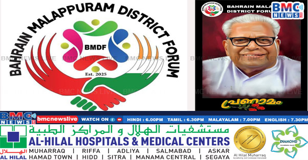 • മുൻ കേരള മുഖ്യമന്ത്രി അച്യുതാനന്ദൻ്റെ നിര്യാണത്തിൽ ബഹറൈൻ മലപ്പുറം ഡിസ്ട്രിക്ട് ഫോറം അനുശോചനം രേഖപ്പെടുത്തി