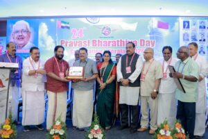 കേരളം ഇന്നു കൈവരിച്ചിട്ടുള്ള എല്ലാ വികസനങ്ങൾക്കും അടിസ്ഥാനം പ്രവാസികളാണെന്നു വി. ജോയ് എം.എൽ.എ. അഭിപ്രായപ്പെട്ടു.ഇരുപത്തി നാലാമത് പ്രവാസി ഭാരതീയ ദിനാഘോഷ (കേരള) ത്തിന്റെ സമാപന സമ്മേളനം ഉദ്ഘാടനം ചെയ്തു സംസാരിക്കുകയായിരുന്നു അദ്ദേഹം.കേരള സർക്കാർ പ്രവാസി സമൂഹത്തിന്റെ പ്രത്യേകിച്ച് മടങ്ങിവന്ന പ്രവാസികളുടെ കാര്യങ്ങളിൽ താല്പര്യപൂർവ്വം പദ്ധതികൾ നടപ്പിലാക്കുന്നതിൽ അതീവ ജാഗ്രത പുലർത്തുന്നുണ്ടെന്നും ജോയ് തുടർന്നു പറഞ്ഞു.ഇ.കെ. നായനാർ സ്മാരക പ്രവാസി ഭാരതീയ പുരസ്ക്കാരം സി.പി.ഐ മുതിർന്ന നേതാവും മുൻ മന്ത്രിയുമായ കെ.ഇ.ഇസ്മയിൽ സ്വീകരിച്ചു.