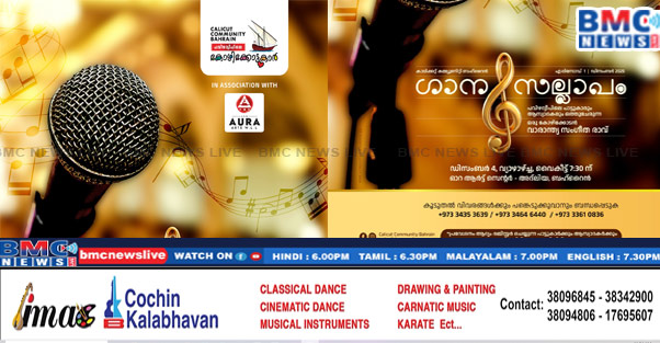 ബഹ്റൈനിലെ കോഴിക്കോട്ടുകാരുടെ ജനകീയ കൂട്ടായ്മയായ പവിഴ ദ്വീപിലെ കോഴിക്കോട്ടുകാർ_ കാലിക്കറ്റ് കമ്മ്യൂണിറ്റി ബഹ്റൈൻ പുതിയൊരു സംഗീത പരിപാടിക്ക് തുടക്കം കുറിക്കുന്നു.പാട്ടും പറച്ചിലുമായൊരു വാരാന്ത്യരാവ്. പാട്ടു പാടുന്നവർക്കും ആസ്വാദകർക്കുമായാണ് ഇത്തരത്തിലൊരു സംഗീത സദസ്സ് പവിഴദ്വീപിലെ കോഴിക്കോട്ടുകാർ ഒരുക്കുന്നത് . പ്രവാസ ജീവിതത്തിൽ നഷ്ടപ്പെട്ടുപോയ കോഴിക്കോട് നഗരത്തിലും സമീപ പ്രദേശങ്ങളിലും സജീവമായിരുന്ന പാട്ടു രാവുകൾ ബഹ്റൈനിൽ പുനഃസൃഷ്ടിക്കുകയാണ്. ഡിസംബർ 4 വ്യാഴാഴ്ച്ച വൈകുന്നേരം 7:30 മണിക്ക്, അദ്ലിയ ഓറ ആർട് സെന്ററിൽ “ഗാന സല്ലാപത്തിന്റെ” ആദ്യ എപ്പിസോഡ് സംഘടിപ്പിക്കും. പരിമിതമായ ആസ്വാദകരെയും , പാട്ടുകാരെയും മാത്രമേ ഓരോ എപ്പിസോഡിലും ഉൾപെടുത്താൻ സാധിക്കുള്ളു എന്നതിനാൽ ആദ്യം രജിസ്റ്റർ ചെയ്യുന്നവർക്കായിരിക്കും ഈ പരിപാടിയിൽ പങ്കെടുക്കാനുള്ള മുൻഗണന.ഗാന സല്ലാപത്തിൽ പങ്കെടുക്കുവാൻ താല്പര്യമുള്ളവർ കൂടുതൽ വിവരങ്ങൾക്കും, രജിസ്ട്രേഷനും താഴെ കൊടുത്തിരിക്കുന്ന നമ്പറുകളിൽ ബന്ധപ്പെടണമെന്ന് ഭാരവാഹികൾ പത്രകുറിപ്പിൽ അറിയിച്ചു.