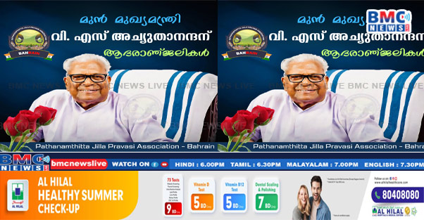 കേരള രാഷ്ട്രീയത്തിലെ അതികായനും, മുൻ മുഖ്യമന്ത്രിയും, കരുത്തനായ നേതാവുമായ സ. വി.എസ്അച്യുതാനന്ദന്റെ നിര്യാണത്തിൽ പത്തനംതിട്ട ജില്ലാ പ്രവാസി അസോസിയേഷൻ അനുശോചനം രേഖപ്പെടുത്തി