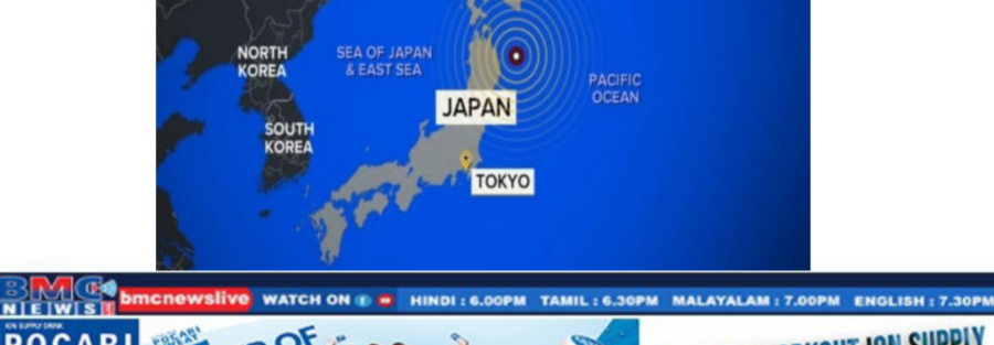 പസഫിക് സമുദ്രത്തിൽ പത്ത് കിലോമീറ്റർ ആഴത്തിലാണ് ഭൂചലനത്തിന്റെ പ്രഭവ കേന്ദ്രമെന്നാണ് ജപ്പാൻ കാലാവസ്ഥാ ഏജൻസി അറിയിച്ചത്. പ്രഭവ കേന്ദ്രത്തിൽ നിന്ന് നൂറുകണക്കിന് കിലോമീറ്റർ അകലെയുള്ള ടോക്യോയിലെ വൻകിട കെട്ടിടങ്ങൾ പോലും കുലുങ്ങുന്ന തലത്തിൽ ശക്തമായ ഭൂകമ്പമാണ് ഉണ്ടായതെന്നാണ് റിപ്പോർട്ട്.
