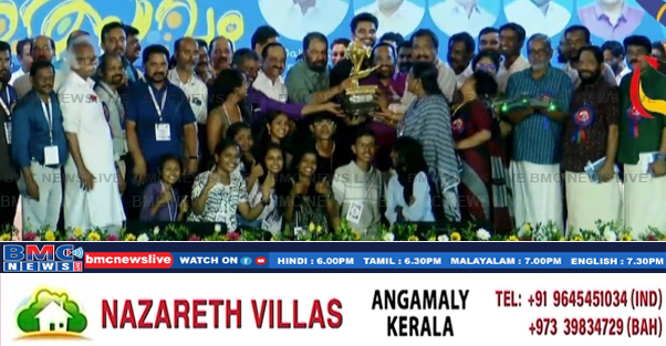 ഒടുവിൽ സ്വര്ണക്കപ്പ് തൃശൂരേക്ക്. 1008 പോയിന്റ് നേടിയാണ് തൃശൂരിന്റെ സുവര്ണ നേട്ടം. കേവലം ഒരു പോയ്ന്റ് വ്യത്യാസത്തിലാണ് പാലക്കാടിന് ഒന്നാം സ്ഥാനം നഷ്ടമായത്. 1007 പോയ്ന്റാണ് പാലക്കാടിന് ലഭിച്ചത്. 1003 പോയ്ന്റ് നേടിയ കണ്ണൂരാണ് മൂന്നാം സ്ഥാനത്ത്. 26 വര്ഷത്തിന് ശേഷമാണ് കലയുടെ പൊന്കിരീടം തൃശൂരിലേക്കെത്തുന്നത്. 1994,1996,1999 വര്ഷങ്ങളിലാണ് തൃശൂരിന് കപ്പ് ലഭിച്ചിട്ടുള്ളത്.സ്കൂളുകളുടെ വിഭാഗത്തില് ആലത്തൂര് ബി.എസ്.എസ് ഗുരുകുലം ഹയര് സെക്കന്ഡറി സ്കൂള് ആണ് ഒന്നാമത്. 12ാം തവണയാണ് ഗുരുകുലം ഹയര് സെക്കന്ഡറി സ്കൂള് ഈ നേട്ടം കൊയ്യുന്നത്.പൂര്ണ്ണമായും ഹരിതചട്ടം പാലിച്ചാണ് ഇത്തവണ സംസ്ഥാന സ്കൂള് കലോത്സവം നടന്നത്. ഇത്തവണ 25 വേദികളിലായാണ് കലയുടെ അരങ്ങുണന്നത്. എല്ലാ തവണയും കേള്ക്കുന്ന വിധി നിര്ണയത്തിലെ പരാതികളും ആരോപണങ്ങളും വളരെ വിരളമായ കലോത്സവത്തിനാണ് തിരശ്ശീല വീഴുന്നത്. ഊരുകളില് മാത്രം അവതരിപ്പിച്ചിരുന്ന മംഗലംകളി, മലപ്പുലയ ആട്ടം, പളിയനൃത്തം, പണിയനൃത്തം എന്നിവയെല്ലാം ഇത്തവണ അരങ്ങിലെത്തിയിരുന്നു. മുഖ്യവേദിയായ സെന്ട്രല് സ്റ്റേഡിയത്തിലാണ് സമാപന സമ്മേളനം നടക്കുന്നത്. പ്രതിപക്ഷ നേതാവ് വി ഡി സതീശന് സമാപന സമ്മേളനം ഉദ്ഘാടനം ചെയ്തു. ജേതാക്കള്ക്കുള്ള സ്വര്ണക്കപ്പും മാധ്യമ പുരസ്കാരങ്ങളും മന്ത്രി വി.ശിവന്കുട്ടി സമ്മാനിച്ചു . സ്വര്ണക്കപ്പ് രൂപകല്പന ചെയ്ത ചിറയിന്കീഴ് ശ്രീകണ്ഠന് നായരെയും ,രണ്ടു പതിറ്റാണ്ടായി കലോത്സവ പാചകത്തിനു നേതൃത്വം നല്കുന്ന പഴയിടം മോഹനന് നമ്പൂതിരിയെയും ആദരിച്ചു. മന്ത്രി ജി.ആര്.അനില് അധ്യക്ഷത വഹിച്ചു . സ്പീക്കര്, മന്ത്രിമാര് തുടങ്ങിയവര് പങ്കെടുത്തു.സിനിമ താരങ്ങളായ ടോവിനൊ തോമസും ആസിഫ് അലിയും മുഖ്യാഥിതികളായി പങ്കെടുത്തു.