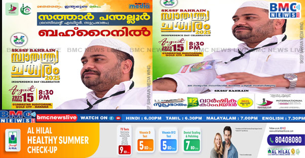 ഇന്ത്യൻ സ്വാതന്ത്ര്യ ദിനത്തിൽ ” മതേതരത്വം ; ഇന്ത്യയുടെ മതം “എന്ന ശീർഷകത്തിൽ വെള്ളിയാഴ്ച രാത്രി 8:30 ന് മനാമ സമസ്ത ഓഡിറ്റോറിയത്തിൽ സ്വാതന്ത്ര്യ ചത്വരം സംഘടിപ്പിക്കും.സമസ്ത ബഹ്റൈൻ പ്രസിഡൻ്റ് സയ്യിദ് ഫഖ്റുദ്ദീൻ തങ്ങൾ തേങ്ങാപട്ടണം ഉദ്ഘാടനം ചെയ്യുന്ന സ്വാതന്ത്ര്യ ദിന സംഗമത്തിൽ സുപ്രഭാതം റസിഡൻ്റ് എഡിറ്ററും ,എസ് കെ എസ് എസ് എഫ് സംസ്ഥാന വൈസ് പ്രസിഡൻ്റുമായ സത്താർ പന്തല്ലൂർ മുഖ്യാതിഥിയായി പങ്കെടുക്കും.ബഹ്റൈനിലെ വിവിധ മത രാഷ്ട്രീയ സാംസ്കാരിക നേതാക്കളും മറ്റ് സംഘടനകളുടെ പ്രതികളും കൂടാതെ വിശിഷ്ടാതിഥി റവ.ഫാദർ അനൂപ് പ്രസംഗിക്കും.