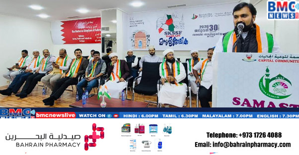 എസ്.കെ.എസ്.എസ്.എഫ് ഇന്ത്യക്കകത്തും പുറത്തുമായി ഇന്ത്യൻ റിപബ്ലിക്ക് ദിനത്തിൽ “രാഷ്ട്ര രക്ഷക്ക് സൗഹൃദത്തിൻ്റെ കരുതൽ” എന്ന പ്രമേയത്തിൽ സംഘടിപ്പിക്കുന്ന മഹത്തായ പരിപാടി ബഹ്റൈനിലും സമുചിതമായി ആഘോഷിച്ചു.ബഹ്റൈനിലെ സാമൂഹിക സാംസ്കാരിക രംഗങ്ങളിൽ മുൻനിരയിൽ നിൽക്കുന്ന നേതാകൾ പങ്കെടുത്തു.ഉസ്താദ് സഹൽ ഫൈസി ഓടക്കാലി പ്രമേയ പ്രഭാഷണം നടത്തി സംസാരിച്ചു പൂർവ്വകാല ഇന്ത്യൻ പൗരന്മാർ തമ്മിൽ വർത്തിച്ച് പോന്ന സാഹോദര്യവും ചേർത്ത് പിടിക്കലും പുനരാവിഷ്ക്കരിക്കപ്പെടണമെന്ന് പ്രഭാഷണ മധ്യേ സദസ്സിനെ ഉണർത്തി.നേരും , നെറിയുമുളളവനാവുക; മനുഷ്യരോട് കരുണയും കനിവും ഉള്ളവരാവുക എന്ന സ്നേഹ സന്ദേശം സദസ്സിന് കൈമാറി കൊണ്ടാണ് മുഖ്യാതിഥിയിയായി എത്തിച്ചേർന്ന റവറൻ്റ് ഫാദർ അനൂപ് സാം പറഞ്ഞു.ഇന്ത്യൻ സ്കൂൾ ചെയർമാൻ അഡ്വ.ബിനു മണ്ണിൽ; ഗ്ലോബൽ ഒ.ഐ.സി.സി പ്രതിനിധി ബിനു കുന്നന്താനം, ബഹ്റൈൻ പ്രതിഭ പ്രസിഡണ്ട് മഹേഷ് കെ വി,ഒ.ഐ.സി.സി ബഹ്റൈൻ’ സെക്രട്ടറി മനു മാത്യു , IYCC ബഹ്റൈൻ പ്രതിനിധി അനസ് കായംകുളം, മുൻ ഇന്ത്യൻ സ്കൂൾ ചെയർമാൻ അബ്രഹാം ജോൺ,സാമൂഹ്യ പ്രവർത്തകരായ റഫീഖ് അബ്ദുള്ള,സൈദ് ഹനീഫ്,സമസ്ത ബഹ്റൈൻ ജനറൽ സെക്രട്ടറി അബ്ദുൽ വാഹിദ് എന്നിവർ ആശംസകൾ നേർന്നു കൊണ്ട് സംസാരിച്ചു.സമസ്ത ബഹ്റൈൻ, ട്രഷറർ നൗശാദ് എസ്.കെ; വൈസ് പ്രസിഡൻ്റ് ഹാഫിദ് ശറഫുദ്ധീൻ മൗലവി ,ബഹ്റൈൻ റൈഞ്ച് ജംഇയ്യത്തുൽ ഉലമ പ്രസിഡൻ്റ് സയ്യിദ് യാസർ ജിഫ്രി തങ്ങൾ; ജനറൽ സെക്രട്ടറി ബഷീർ ദാരിമി, എന്നിവർ ,മുഹമ്മദ് മുസ്ലിയാർ ഇടവണ്ണപ്പാറ ,സമസ്ത ഏരിയ നേതാക്കൾ എസ് കെ എസ് എസ് എഫ് ഏരിയ കൺവീനർമാർ സന്നിഹിതരായി. എസ്.കെ.എസ്.എസ്. എഫ് വൈസ് പ്രസിഡൻ്റ് അബ്ദുൽ മജീദ് ചോലക്കോട് അധ്യക്ഷതയിൽ സമസ്ത ബഹ്റൈർ ഹിദ്ദ് ഏരിയ കോഡിനേറ്റർ റബീഹ് ഫൈസി അമ്പലക്കടവ് ആമുഖവും സയ്യിദ് മുഹമ്മദ് യാസർ ജിഫ് രി തങ്ങൾ ഉദ്ഘാടനവും, എസ്.കെ.എസ്.എസ്. എഫ് വൈസ് പ്രസിഡൻ്റ് സജീർ പന്തക്കൽ പ്രതിജ്ഞയും എസ്.കെ.എസ്.എസ്. എഫ് ജനറൽ സെക്രട്ടറി നവാസ് കുണ്ടറ സ്വാഗതവും, ട്രഷറർ ഉമൈർ വടകര നന്ദിയും പറഞ്ഞു.എസ് കെ എസ് എസ് എഫ് ബഹ്റൈൻ ജോയിൻ സെക്രട്ടറിമാരായ അഹമ്മദ് മുനീർ ,മുഹമ്മദ് പെരിന്തൽമണ്ണ കൂടാതെ പ്രവർത്തക സമിതി അംഗങ്ങൾ പരിപാടികൾക്ക് നേതൃത്വം നൽകി.