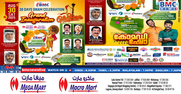 • മെഗാമാർട്ട് അവതരിപ്പിക്കുന്ന ബി.എം.സി ശ്രാവണ മഹോത്സവം 2025 ന് ഇന്ന് (ഓഗസ്റ്റ് 30 ശനിയാഴ്ച)
