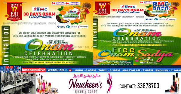 മെഗാമാർട്ട് അവതരിപ്പിക്കുന്ന ബഹ്റൈൻ മീഡിയ സിറ്റിയുടെ 30 ദിവസം നീണ്ടുനിൽക്കുന്ന ഓണാഘോഷമായ ശ്രാവണ മഹോത്സവം 2025ന്റെ ഭാഗമായി ഒരുക്കുന്ന സൗജന്യ ചാരിറ്റി ഓണസദ്യയുടെ ഒരുക്കങ്ങൾ പൂർത്തിയായി.ഒക്ടോബർ 17 നാളെ വെള്ളിയാഴ്ച രാവിലെ 11 മണി മുതലാണ് ബിഎംസി അങ്കണത്തിൽ വിവിധ ലേബർ ക്യാമ്പുകളിൽ നിന്നുള്ള 1200 ലധികം തൊഴിലാളികൾക്കായി സ്വാദിഷ്ടമായ ഓണസദ്യ ഒരുങ്ങുന്നത്.ബിഎംസി ചെയർമാനും മാനേജിങ് ഡയറക്ടറുമായ ഫ്രാൻസിസ് കൈതാരത്തിന്റെ നേതൃത്വത്തിൽ,ശ്രാവണ മഹോത്സവം 2025 ഓർഗനൈസിങ് കമ്മിറ്റി ചെയർമാൻ സുധീർ തിരുനിലത്ത്,ജനറൽ കൺവീനർ ബിബിൻ വർഗീസ്,ചീഫ് കോഡിനേറ്റർ മണിക്കുട്ടൻ,എന്നിവരും മറ്റ് സംഘാടക സമിതി അംഗങ്ങളും ചേർന്നാണ് വിപുലമായ പരിപാടി നാളെ നടത്തുന്നത്. ഓണാഘോഷത്തോടനുബന്ധിച്ച് തൊഴിലാളികളുടെയും മറ്റും വിവിധ കലാപരിപാടികളും അരങ്ങേറുന്നതാണ്.ചാരിറ്റി ഓണസദ്യ പദ്ധതിയോട് സഹകരിച്ച ഏവർക്കും നന്ദി അറിയിക്കുന്നുവെന്നും,ഏവരുടെയും പിന്തുണ ആവശ്യമാണെന്നും ഫ്രാൻസിസ് കൈതാരത്ത് അഭ്യർത്ഥിച്ചു.