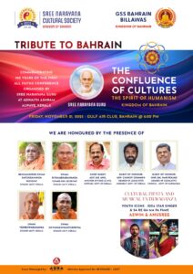 ഹിസ് മജസ്റ്റി കിംഗ് ഹമദ് ബിൻ ഇസ്സ അൽ ഖലീഫ, ഹിസ് റോയൽ ഹൈനസ് പ്രൈംമിനിസ്റ്റർ & ക്രൗൺ പ്രിൻസ് സൽമാൻ ബിൻ ഹമദ് അൽ ഖലീഫ എന്നിവർക്ക് ശ്രീനാരായണ സമൂഹത്തിൻ്റെ ആദരവും നന്ദിയും അറിയിച്ചു കൊണ്ട് ‘ട്രിബൂട്ട് ടു ബഹ്റൈൻ’ എന്ന പരിപാടിയുടെ രണ്ടാം പതിപ്പ് സംഘടിപ്പിക്കുന്നു. ശ്രീ നാരായണ ഗുരുദേവന്റെ നേതൃത്ത്വത്തിൽ ആലുവ അദ്വൈതാശ്രമത്തിൽ വച്ചു നടന്ന സർവ്വമത സമ്മേളനത്തിന്റെ 100-ാം വാർഷികഘോഷ വേളയിൽ ആണ് Tribute to Bahrain – The Confluence of Cultures The Spirit of Humanism എന്ന പരിപാടി നടത്തപ്പെടുന്നത്. ബഹ്റിനും ഇന്ത്യയുമായുള്ള സാമൂഹ്യ-സാംസ്കാരിക ബന്ധം ഊട്ടിയുറപ്പിക്കുക എന്നത് മുൻ നിർത്തിയാണ് ഈ പരിപാടി സംഘടിപ്പിക്കുന്നത്. നവംമ്പർ 21-ാം തിയതി സൽമാബാദിലെ ഗൾഫ് എയർ ക്ലബിൽ വച്ചു വൈകിട്ട് 6 മണിക്ക് നടക്കുന്ന ആഘോഷ പരിപാടിയിൽ കേരള ഭക്ഷ്യ സിവിൽ സപ്ലൈസ് മന്ത്രി അഡ്വക്കേറ്റ് ജി ആർ അനിൽ മുഖ്യ അതിഥിയാകുന്നു. മറ്റു അതിഥികളായി കേരള നിയമസഭ എം എൽ എ അഡ്വക്കേറ്റ് ചാണ്ടി ഉമ്മൻ, കർണാടക നിയമസഭ എം എൽ എ ഹരിപ്രസാദ്, ശിവഗിരി മഠം പ്രസിഡന്റ് ബ്രഹ്മശ്രീ സച്ചിദാനന്ദ സ്വാമികൾ, മുൻ ജനറൽ സെക്രട്ടറി ഋതംബരാനനന്ദ സ്വാമികൾ, മറ്റു ശിവഗിരി മഠം സ്വാമിമാരായ സ്വാമി വീരേശ്വരാനന്ദ, സ്വാമി ശിവനാരായണ തീർത്ഥ എന്നിവർ പങ്കെടുക്കുന്നു. ആഘോഷങ്ങൾക്കു കൂടുതൽ തിളക്കമേകാൻ ഐഡിയ സ്റ്റാർ സിംഗർ ഫേയിം അനുശ്രീയും, സരിഗമപ ഫെയിം അശ്വിനും എത്തുന്നു.