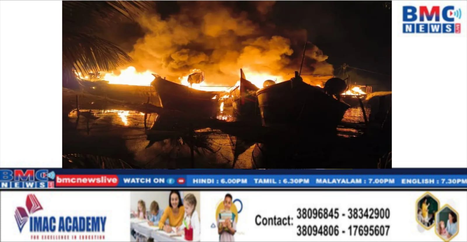 കൊല്ലം കുരീപ്പുഴ പള്ളിക്ക് സമീപം വൻ തീപിടിത്തം; പതിനഞ്ചോളം ബോട്ടുകളും ചീനവലകളും കത്തിനശിച്ചു
