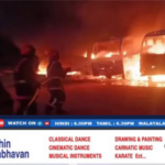 സ്കൂളിൽ നിർത്തിയിട്ടിരുന്ന മൂന്ന് സ്കൂൾ ബസുകൾ കത്തിനശിച്ചു